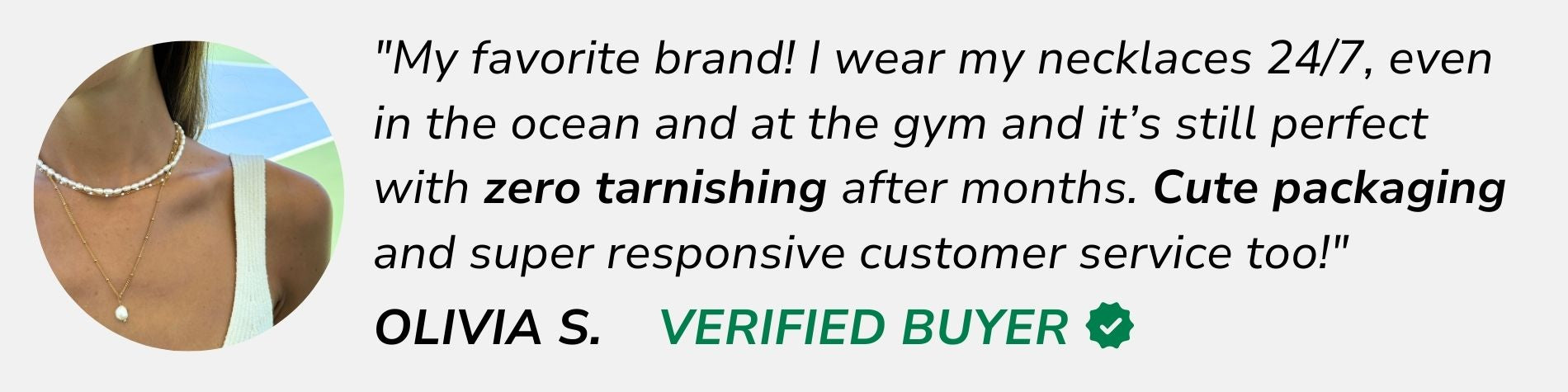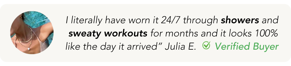 Our jewelry is 100% waterproof so you can do your daily routine without having to take it off! You can wear your jewelry in the shower, in the pool, to the gym, and at the beach, they will never tarnish! ✨