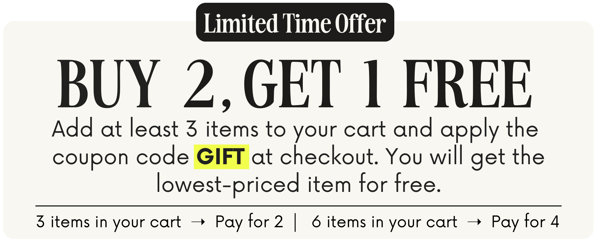 FALL SALE: Add at least three pieces of jewelry to your cart. When you apply the coupon code 'B2G1FALL' at checkout, the least expensive item will automatically become free.